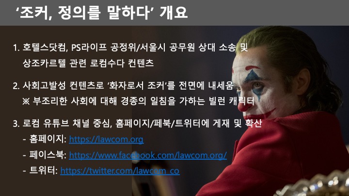 로컴수다 조커, 정의를 말하다